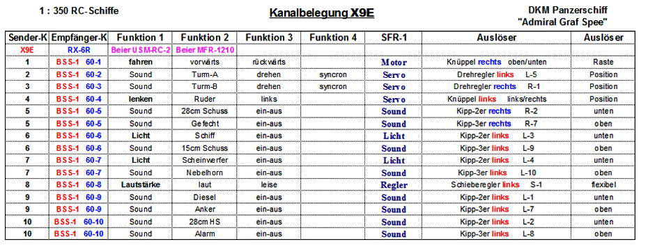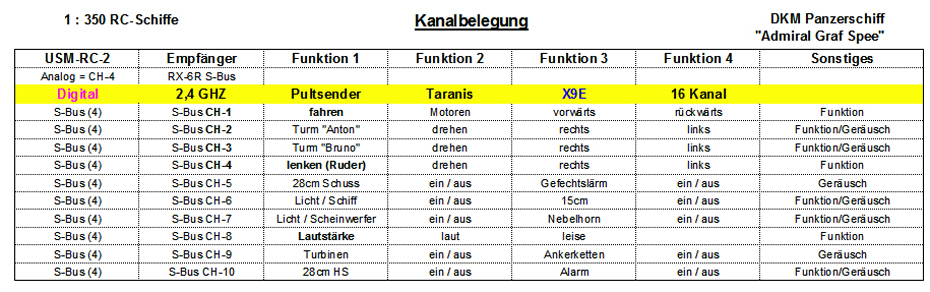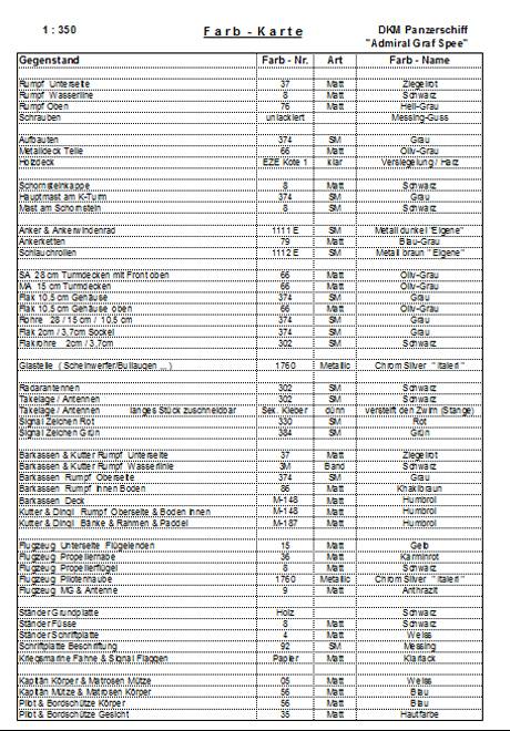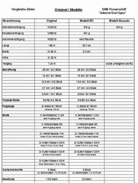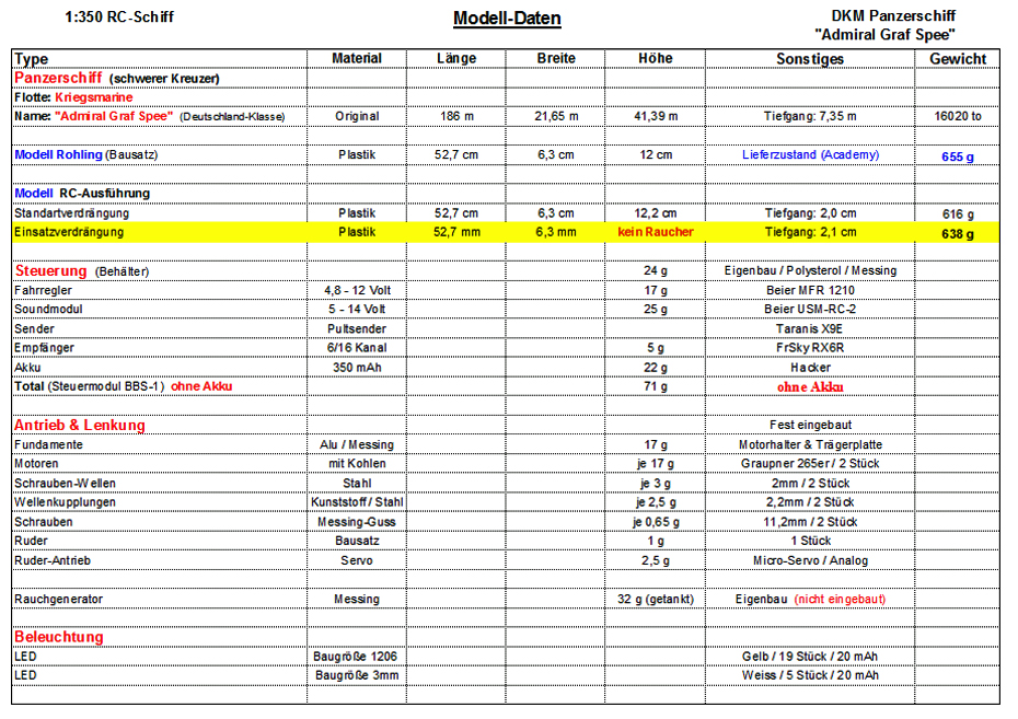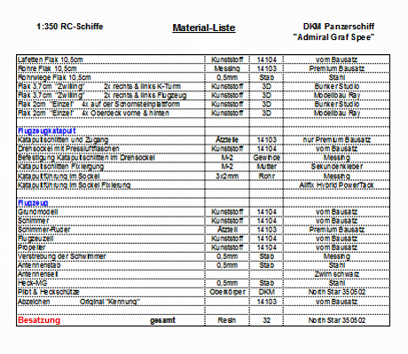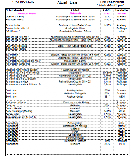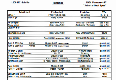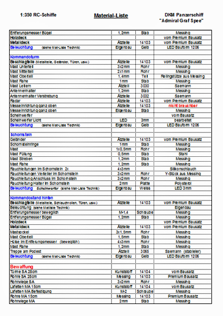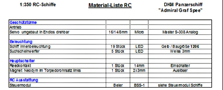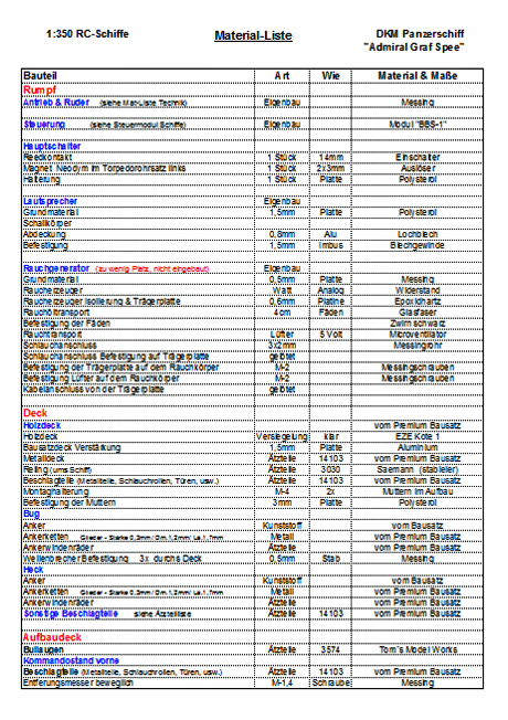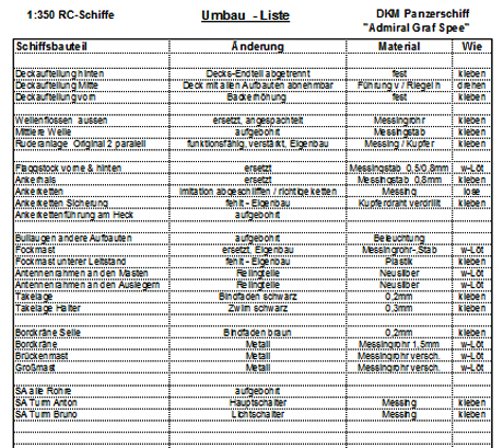 Inhaltsverzeichnis Daten Graf Spee Material & Umbauliste |