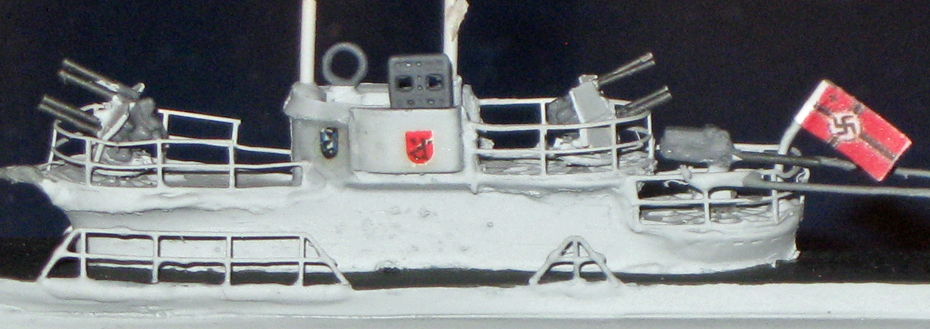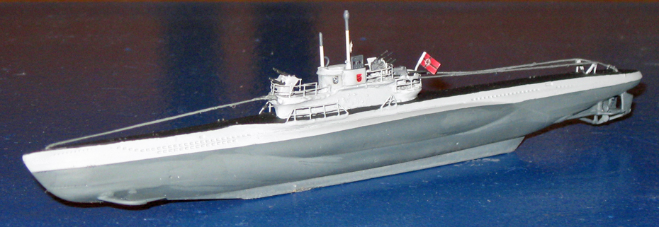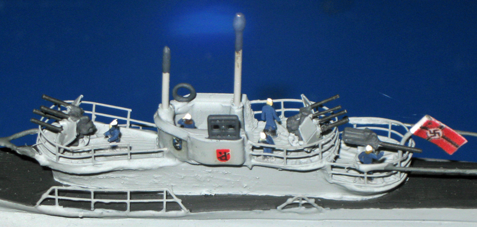 Deutsche Kriegsmarine (DKM) " U-441 / Type VII-C" (759 to üW. 860 to uW. total 990to) KptLt: Klaus Hartmann / Götz von Hartmann Dienstzeit 21.02.1942 - 08.06.1944 versenkt Flak-Uboot von 22.05.1943 - 17.01.1944 (Rückbau) Versenkt: 3 Schiffe mit 19051 to Bausatz: Flagman 235022, überarbeitet |