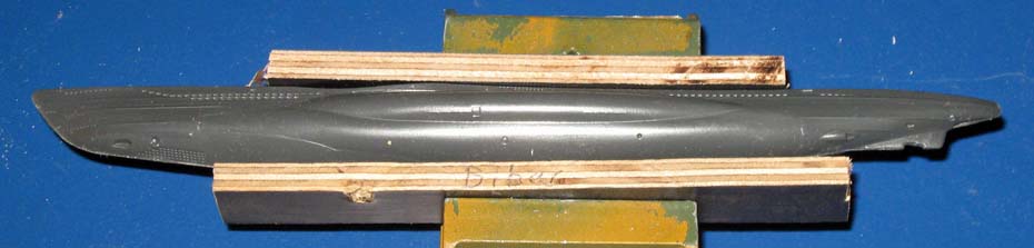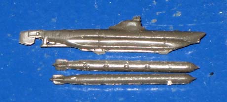 34/35. Die zwei Torpedos welche rechts und links am Rumpf der "Biber" befestigt sind, passen sehr gut zum Modell. |