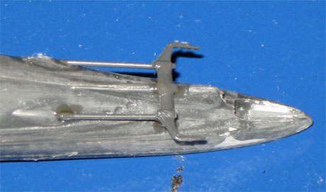 | 24/25. Den "Peilrahmen" vom Bausatz habe ich durch eine 0,5mm Messingkonstruktion ersetzt. |
