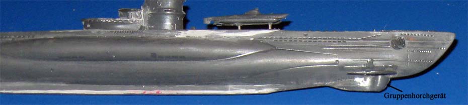 21. Ein besonderes Merkmal der Version VII-C/41 ist das Gruppenhorchgerät unterhalb der vorderen Tiefenruder am Bug. |