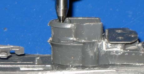 11. Bohren der 0,5mm Löcher zur Aufnahme der Ruderwellen. |
