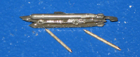36/37. In die beiden "Biber" sind jeweils zwei 0,8mm Löcher zur Aufnahme von 0,8mm Messingstäben gebohrt. |