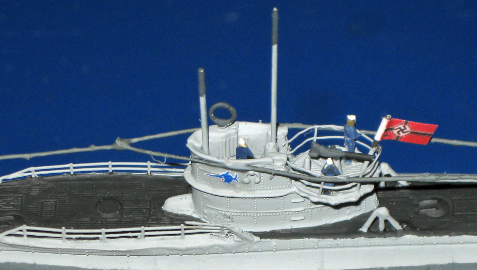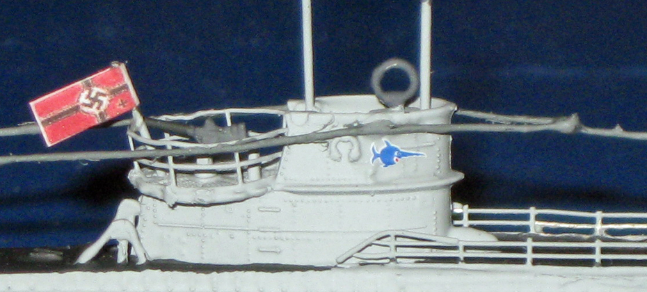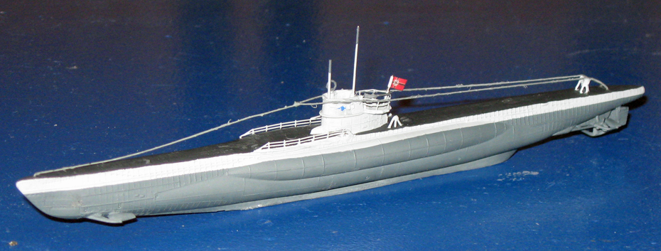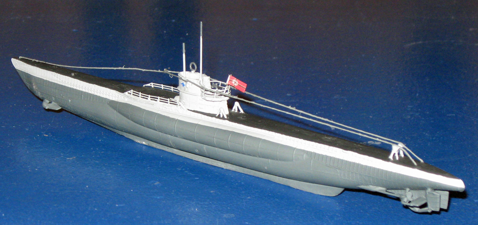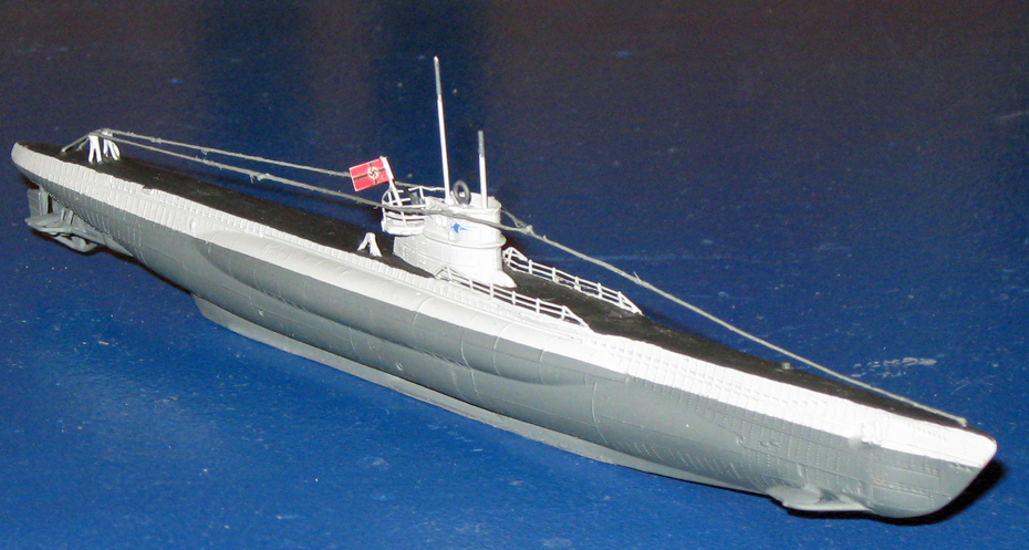 Deutsche Kriegsmarine (DKM) " U-480 / Type VII-C" (805 to üW. 909 to uW. total 1094to mit "Alberich" Beschichtung) Olt.zS: Hans Joachim Förster Dienstzeit 06.10.1943 - 20.02.1945 versenkt (Mine). Das Erste Tarnkappen U-Boot der Welt Versenkt/Priese: 4 Schiffe mit 14621 to Bausatz: Revell 05093, überarbeitet |