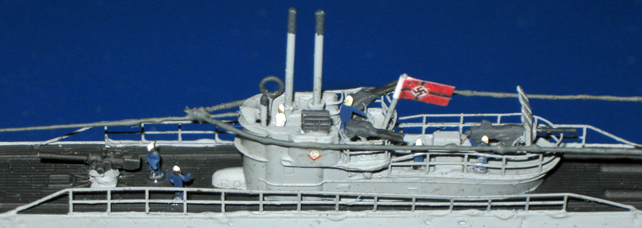 Deutsche Kriegsmarine (DKM) " U-68 / Type IX-C" (1120 to üW. 1232 to uW. total 1540to) KptLt: Karl-Friedrich Merten / Olt.zS: Albert Lauzemis Dienstzeit 11.02.1941 - 10.04.1944 versenkt Das erfolgreichste U-Boot diese Types Versenkt/Priese: 33 Schiffe mit 198021 to Bausatz: Hobby Boss 83508, überarbeitet |