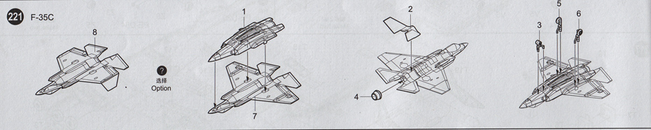 Modell: F-35C "Lightning-II" Ausführung: Standmodell Besatzung: 1 Artikelnummer: 05638 Inhalt: 8 (16) Flugzeuge Preis: Bausatz 05638 Besonderes: keine Glasteile, Naßschiebebilder-Satz 8x (VFA-213) Bearbeitung: normal |