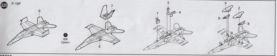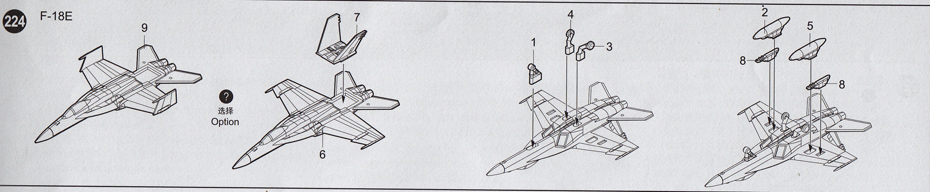 Modell: F-18E "Hornet" Ausführung: Standmodell Besatzung: 1 Artikelnummer: 05638 Inhalt: 8 (16) Flugzeuge Preis: Bausatz 05638 Besonderes: keine Glasteile, Naßschiebebilder-Satz 4x (VFA-31) & Satz 4x (VFA-37) Bearbeitung: normal |