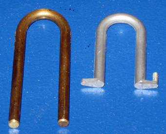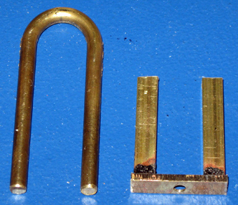14. Der fertige Bügel aus Edelstahl V2A sowie die Halterung aus Messing und die Befestigung des Bügels im Halter durch Messingstifte. | |||||||||||||||||||||||||||||||||||||||||||||||||||