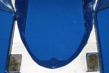17. Die selbe Chassisplatte mit Überrollbügel und Magneten. | 18. Die Chassisplatte wieder eingebaut, passt auf den Millimeter genau. | ||||||||||||||||||||||||||||||||||||||||||||||||||