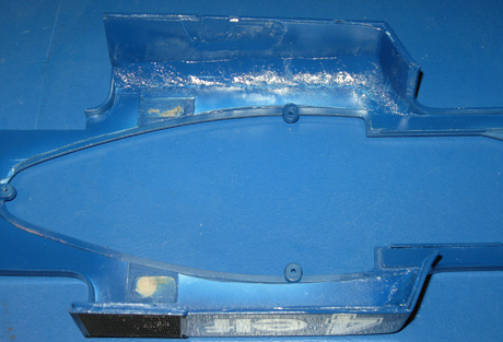 59. Das Monocoque vor der Lackierung, immer noch sind die alten Aufkleber abdrücke zu erkennen. |