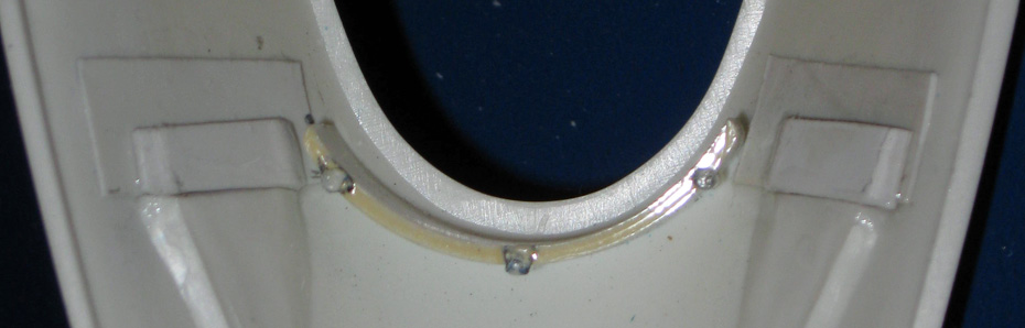 5. Hier die vorderen Löcher in der Karosserie, um die optimale Klebewirkung zu erreichen sollte der Kunststoff angeschliffen werden. | |||||||||||||||||||||||||||||||||||||||||||||||||||