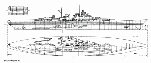 Deutsche Kriegsmarine (DKM) Letzte Schlachtschiff Projektstudie im 2. Weltkrieg Eigenbau, total. Zustand 1944 (Projekt) |
