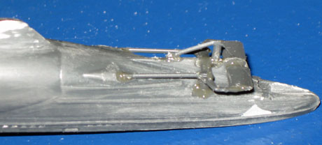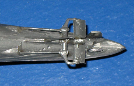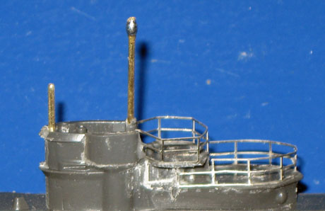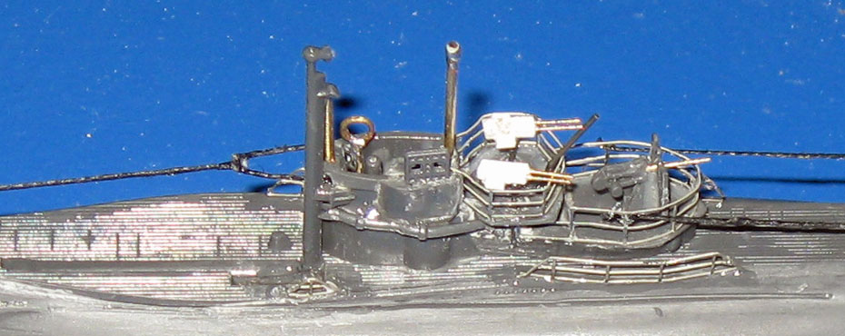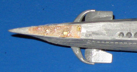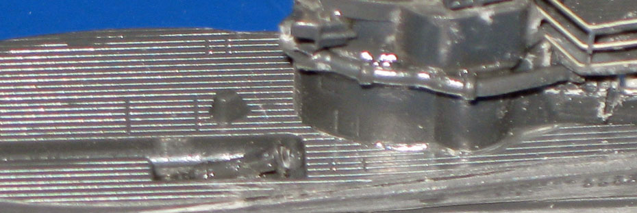 19/20. Die aufgeklebten Ätzteile auf dem Deck an der Bugspitze und am Heck. Vergleichsbild ohne Ätzteile siehe Bild 7. |