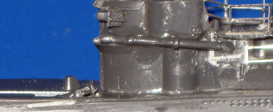 25. Die Schnorchelanlage ist eines der Unterscheidungsmerkmale vom Typ VII-C/41, hier die Rohre links am Turm entlang. |