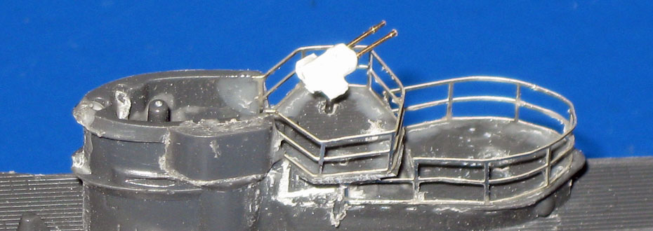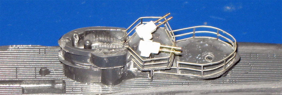 29. Die vier Rohre der beiden 2cm Flak-Zwillinge sind aus dem Handel und aus Messing gefertigt. Als Sockel dient ein 0,5mm Stahlstieft. |