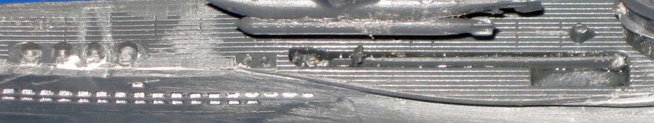 19/20. Die aufgeklebten Ätzteile auf dem Deck an der Bugspitze und am Heck. Vergleichsbild ohne Ätzteile siehe Bild 5. |
