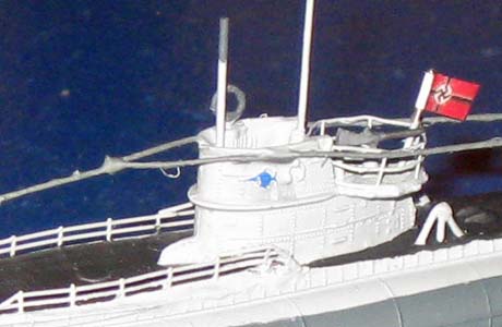 21. U-480 in 1:350 nach dem Stapellauf. Das Geschütz war zur Verbesserung der Tarneigenschaften "Alberich" entfernt. |