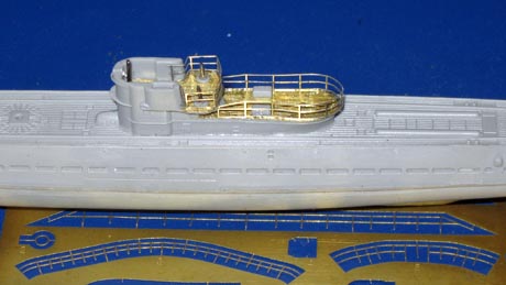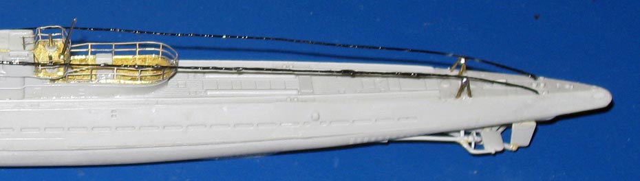 | 4. Die Relingteile sind von der Firma Saemann Art.: 3031, die Ätzteile vom Bausatz sind nicht einsatztauglich, weil zu dünn. | |||||||||||||||||||||||||