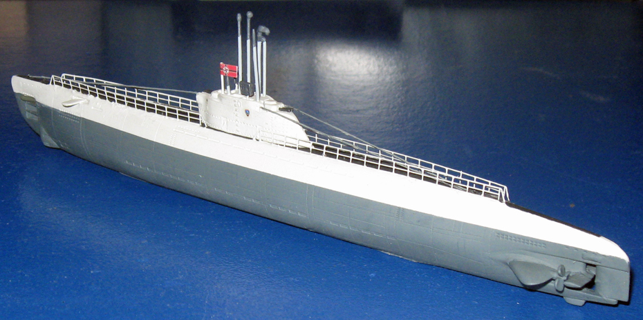 Deutsche Kriegsmarine (DKM) " U-2511 / Type XXI" (1621 to üW. 1819 to uW. total 2114to) KKpt: Adalbert Schnee Dienstzeit 29.09.1944 - 07.01.1946 (Deadlight/versenkt) Der Erste wirkliche U-Boot Type der Welt Eine Feindfahrt mit Scheinangriff (unbemerkt / Kriegsende). Bausatz: AFV-Club SE-73501, überarbeitet |