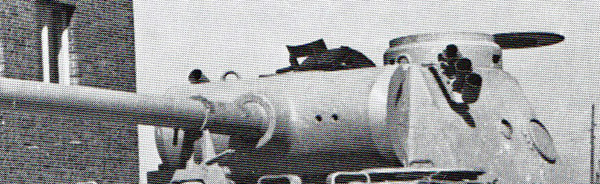 Turm: Der "Kugelfang" an der Walzenblende wurde durch eine senkrechte Verlängerung nach unten beseitigt. In der unteren linken Bildecke noch zu erkennen der schwenkbare Fahrerwinkelspiegel. Rechts von der Kanone die Öffnung für das achsparallel Turmzielfernrohr. Die Öffnung links neben der Kanone war für das Turm-MG. |