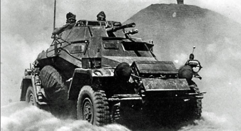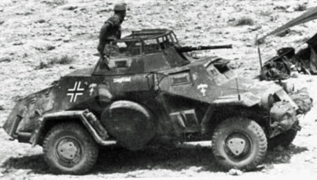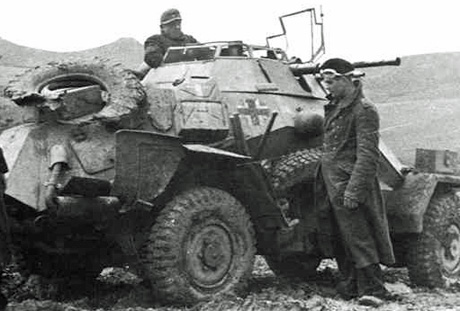 leichter Panzerspähwagen Sd.Kfz. 222 (Daten) Länge: 4,80 m Breite: 1,95 m / Höhe: 2 m / Gewicht: 4,800 Kg / Geschwindigkeit: 90 km/h / Tankinhalt: 100L / Fahrbereich: Straße 350 km Gelände 210 km / Leistung: 80/90 PS / Hubraum: 3500/3800 ccm - 8 Zylinder / Bewaffung: 1 MG-34, 1050 Schuß / 2cm KwK 30/38, 180 Schuss / Produktion total: 1935 bis 1943 / ca. 1702 Stück (222/223) | ||||||||||||||||||||||||