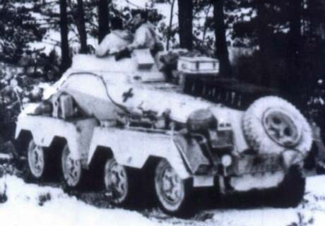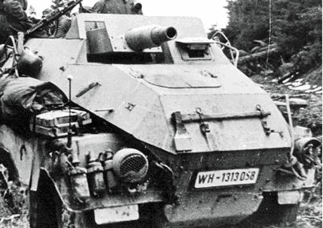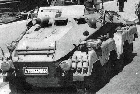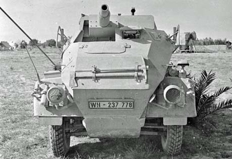 Erläuterung: Der schwere Panzerspähwagen Sd.Kfz. 233 war ein weiteres Fahrzeug dieser Baureihe, er wurde von 1942 bis 1943 gebaut. Die ersten Fahrzeuge dieser Ausführung waren reperaturbedürftige Sd.Kfz. 263 bei dem der Turm entfernt wurde und eine 7,5cm KwK eingebaut wurde. Die Bewaffnung bestand aus einem MG-34 und einer kurzläufige 7,5cm KwK 1937 L/24. Die ca. 244 Fahrzeuge dieser Ausführung die in Dienst gestellt wurden waren Um- und Neubauten. |