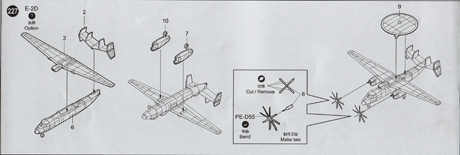 Modell: E-2D "Hawkeye" Ausführung: Standmodell Besatzung: 5 Artikelnummer: 05638 Inhalt: 2 Flugzeuge Preis: Bausatz 05638 Besonderes: keine Glasteile, Naßschiebebilder-Satz 2x (VAW-124) Bearbeitung: normal |