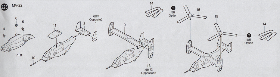 Modell: MV-22B "Osprey" // Ausführung: Standmodell // Besatzung: 2 Artikelnummer: 05638 // Inhalt: 2 Flugzeuge // Preis: Bausatz 05638 Besonderes: keine Glasteile, Naßschiebebilder-Satz 2x (Marines) Bearbeitung: normal |