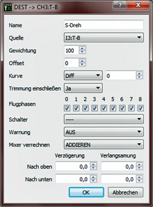 | Kanal-1 Küppel R oben/unten | Kanal-2 L-5 Dreher (Servo) | Kanal-2 L-5 Dreher (Sound) |