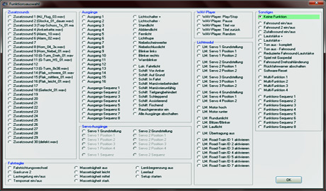| Fahrregler & S-Bus | Sound-Belegung | Ausgangs-Belegung | Proportional-Kanäle | ||||||||||||||||||||||||||||||||||||||||||||||