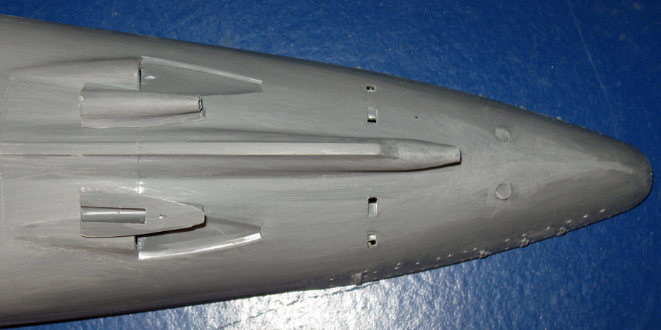 15. Der komplette Rumpf sowie alle angebauten Teile sind mit 400er Naßpapier gründlich angeschliffen, also Lackierfertig. |