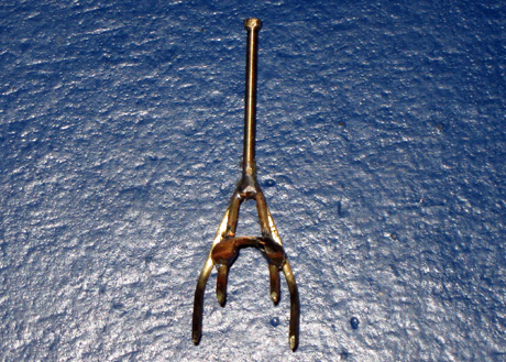 | 60. Der provisorisch eingebaut Flaggstock von unten. |